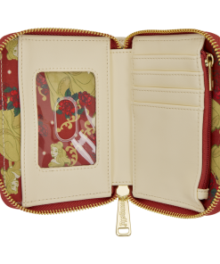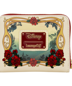 Belle appears on the front of the wallet, surrounded by gold foil and embroidered rose details. Turn the wallet around to find a gold frame with roses that looks out onto a beautiful landscape. Inside, there are four card slots and one clear ID slot!