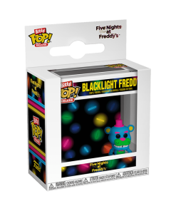 Expand your Five Nights at Freddy’s™ collection with this exclusive Bitty POP! Deluxe Blacklight Freddy! Packaged in a hard acrylic display case, this Bitty POP! Blacklight Freddy stands out against a matching black and neon backdrop!