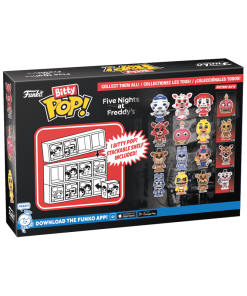 Your favorite Five Nights at Freddy’s™ Pops! have been shrunk into Bitty Pops! Expand your collection with this assortment of Bitty Pop! figures featuring these frightfully fun animatronics as miniaturized figures! This 4-pack includes Bitty Pop! Ballora, Bitty Pop! Funtime Foxy, Bitty Pop! Baby, and a mystery Bitty Pop! figure. The possible mystery Bitty Pops! are Hyper Rare (1/6) Nightmare Cupcake, Hyper Rare (1/6) Springtrap, Rare (1/3) Nightmare Foxy, and Rare (1/3) Funtime Freddy.