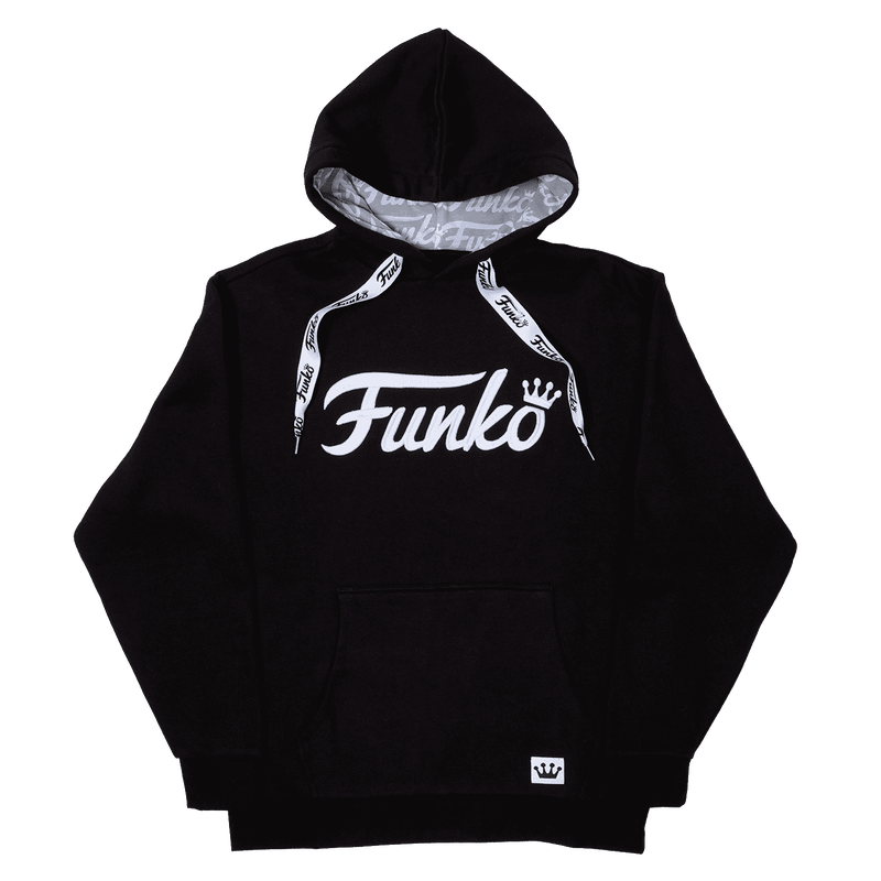 Show your love for Funko with your style! This black unisex hoodie features a large Funko embroidered logo across the front chest. Additional features include an extra-large, lanyard-style drawcord and a lined jersey hood. Fun, cozy style for whatever adventures await you!