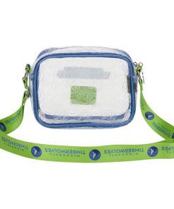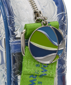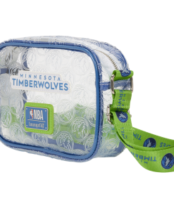 This clear crossbody bag says “Minnesota Timberwolves” on the front. All over the PVC, you’ll find a debossed pattern of their logo. The adjustable crossbody strap features the team name and their logo again to bring the whole look together.