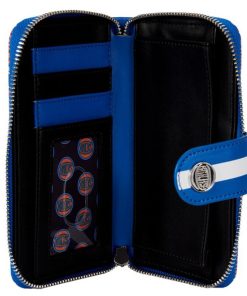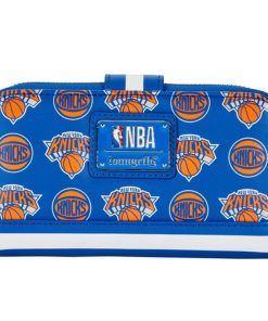 Bring the court to session with this NBA New York Knicks Logo Zip Around Wallet. This vegan leather (polyurethane) wallet carries a printed motif of the New York Knicks’ primary and secondary logos, set against a blue background. The primary logo, in orange, is anchored by a basketball and triangle background with 3D-effect lettering that draws the eyes upwards. The secondary logo, in orange and blue, shows the word “Knicks” running through the center of a basketball.