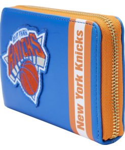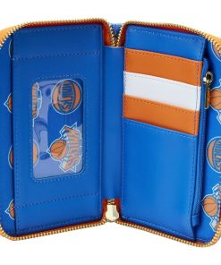 Cheer on your favorite team with a game-winning play for your collection! The Loungefly NBA New York Knicks Patch Icons Zip Around Wallet features embroidered patches on the front and back. The team’s name appears in a strip of orange and white, contrasting the wallet’s blue background. With four slots for holding cards and a clear slot to hold ID, this game-day-ready accessory has plenty of room to carry your gear while sporting your team spirit.