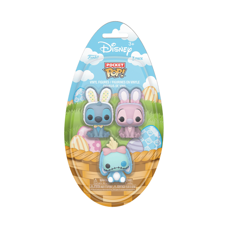 Hop into your favorite springtime celebrations with the Disney Lilo & Stitch Pocket POP! Egg! This 3-pack includes Pocket POP! Stitch, Pocket POP! Angel, and Pocket Pop! Scrump! Fill your holiday basket to the brim when you seek out these festive Disney friends for your collection in their charming, egg-themed packaging. Vinyl collectibles are approximately 1.5 in (3.8 cm) tall.