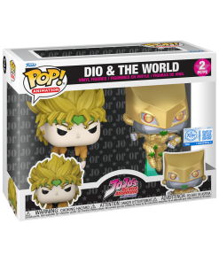 Prepare to take a stand against POP! DIO and POP! The World! This powerful villain and his Stand are determined to conquer the JoJo’s Bizarre Adventure lineup in your POP! Animation collection as this exclusive 2-pack. Vinyl figures are approximately 4.9 and 4.6 in (12.4 and 11.7 cm) tall.