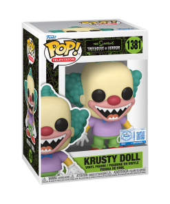 Set to “evil” mode, this exclusive Pop! Krusty Doll™ is determined to cause chaos in the Simpson™ household. Beware this haunted toy when you complete your Treehouse of Horror™ lineup by adding him to your The Simpsons™ collection. Vinyl figure is approximately 4.5 in (11.4 cm) tall.