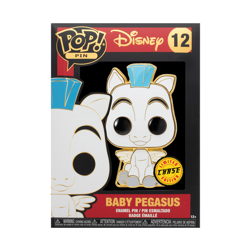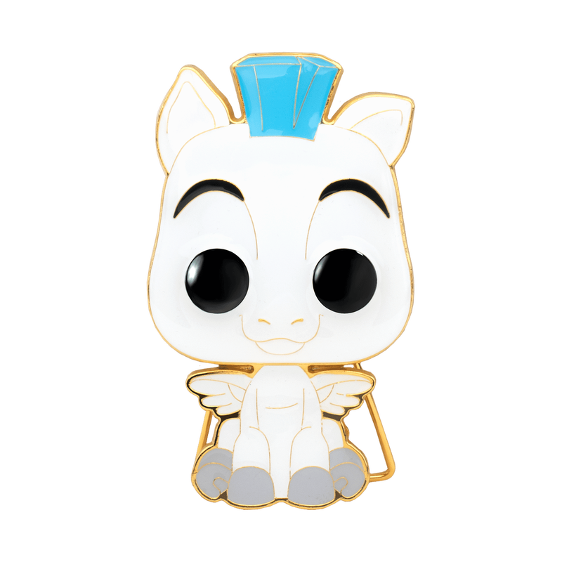 Help Pop! Pin Baby Pegasus find his way back to his young companion Hercules, by adding him to your Disney pin collection. There’s a 1 in 12 chance you may find the chase with features polyurethane details. Pin features gold colored hardware, and a built-in stand. Enamel pin is approximately 4 in (10.2 cm) tall.